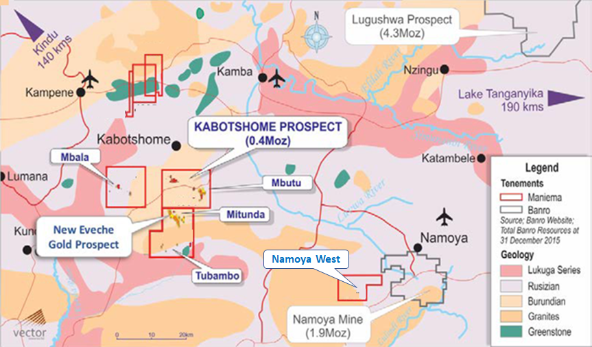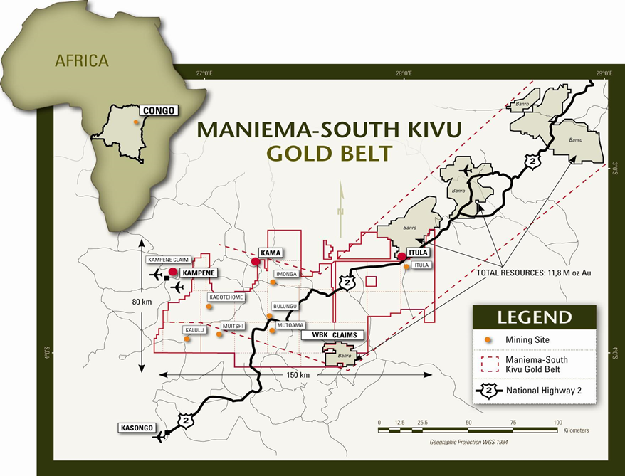 WBK holds several tenements within the Twangiza-Namoya gold belt where several prospects are being developed, including Ngoy, Kabotshome, Mbutu, Mitunda, Mbala and Tubambo.
