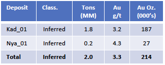 The Kabotshome prospect has produced a JORC compliant inferred mineral resource estimate of 7.0 million tonnes at 1.88 g/t gold for 421,000 ounces of gold in the first 150m with a minerilisation open at depth and on the surface.
