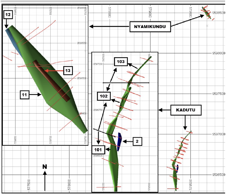 The gold prospect is located only 500m from Mitunda referred to as Eveche. It comprises multiple quartz vein sets that have been exposed from artisanal mining activities, with one main steeply dipping quartz vein mapped over an initial strike length of 600m and which remains open at depth and strike.